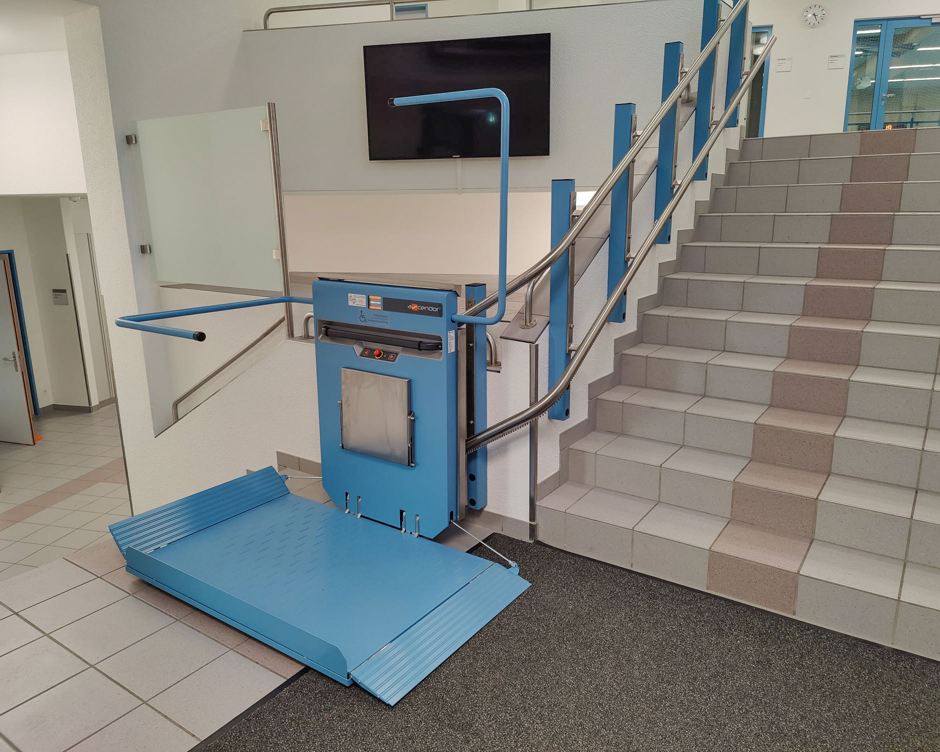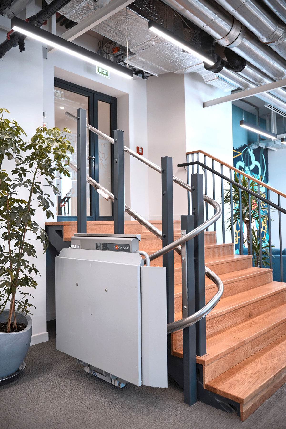 Der Freecurve ist auf einer Wendeltreppe montiert.